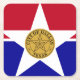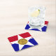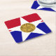 Paper coaster with flag of city of Dallas, Texas; flag with red and blue horizontal bands with seal of the city inside of a white star in the centre