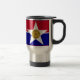 Travel Mug with flag of city of Dallas, Texas; flag with red and blue horizontal bands with seal of the city inside of a white star in the centre