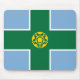 Mousepad with design with a flag of historic county of Derbyshire, in England, Great Britain; blue flag with a green cross and a gold Tudor rose in the centre