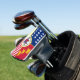 Golf putter cover with flag of city of Detroit, Michigan; red, white and blue flag with stars and stripes, fleur-de-lys, dragons and seal of the city