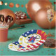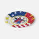 Paper Plate with flag of city of Detroit, Michigan; red, white and blue flag with stars and stripes, fleur-de-lys, dragons and seal of the city