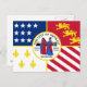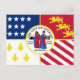 Postcard with flag of city of Detroit, Michigan; red, white and blue flag with stars and stripes, fleur-de-lys, dragons and seal of the city