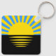 Square keychain with the flag of Donetsk Oblast (Donetska oblast, Доне́цька о́бласть), a blue, yellow, and black flag with a rising gold sun and 12 sunbeams