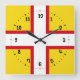 Wall Clock with design with a flag of historic county of Dorset, in England, Great Britain; yellow flag with a white cross with a red border