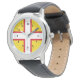 Watch with design with a flag of historic county of Dorset, in England, Great Britain; yellow flag with a white cross with a red border