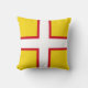 Throw pillow with design with a flag of historic county of Dorset, in England, Great Britain; yellow flag with a white cross with a red border