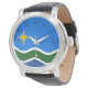 Watch with a design with the flag of Duluth, Minnesota. A blue, green, and white flag with a yellow star