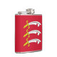 Vinyl wrapped flask with design with a flag of historic county of Essex, in England, Great Britain; red flag with three white, gold hilted Saxon swords (Seaxes)