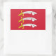 Sticker with design with a flag of historic county of Essex, in England, Great Britain; red flag with three white, gold hilted Saxon swords (Seaxes)
