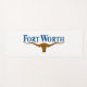 This design features the flag of Fort Worth, which is one of the largest cities in the U.S. state of Texas. It is the county seat of Tarrant County. The city of Fort Worth was established in 1849 as an army outpost on a bank of the Trinity River. Fort Worth has historically been a centre of the Texas Longhorn cattle trade. Although considered by some to be a satellite city due to its proximity to Dallas, which has held a population majority since the 1950s, Fort Worth has become one of the fastest-growing cities in the United States in recent years, particularly in the 21st century.