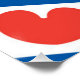 It consists of blue and white diagonal stripes; in the white stripes are red pompeblêden, leaves of the yellow water-lily, that may remind one of hearts, but according to the official instructions "should not be heart-shaped".