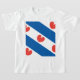 Flag of Friesland, a province in The Netherlands. It consists of blue and white diagonal stripes; in the white stripes are red pompeblêden, leaves of the yellow water-lily, that may remind one of hearts, but according to the official instructions "should not be heart-shaped".