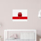 This design features the flag of Gibraltar, which is a British Overseas Territory located at the southern tip of the Iberian Peninsula. It is bordered to the north by Spain. The landscape is dominated by the Rock of Gibraltar at the foot of which is a densely populated town area; the people who live there are primarily native Gibraltarians. The sovereignty of Gibraltar is a point of contention in Anglo-Spanish relations because Spain asserts a claim to the territory. However, Gibraltarians rejected proposals for Spanish sovereignty in a 1967 referendum and, in a 2002 referendum, the idea of shared sovereignty was also rejected. The official language of Gibraltar is English, and is used by the government and in schools. Most locals are bilingual, also speaking Spanish. In addition, many Gibraltarians converse in Llanito, a vernacular unique to Gibraltar.