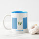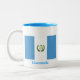 The flag of Guatemala features two colours: sky blue and white. The two sky blue stripes represent the fact that Guatemala is a land located between two oceans, the Pacific Ocean and the Atlantic Ocean (Caribbean sea); and the sky over the country (see Guatemala's National Anthem). The white colour signifies peace and purity. In the centre of the flag is the Guatemalan coat of arms. It includes the Resplendent Quetzal, the national bird of Guatemala that symbolises liberty; a parchment scroll bearing the date of Central America's independence from Spain, 15 September 1821; crossed rifles, indicating Guatemala's willingness to defend itself by force if need be; a bay laurel crown, the symbol for victory; and crossed swords, representing honour. The Central American flag was used in Guatemala until 1851, when a pro-Spanish faction took over and added the Spanish colours of red and yellow to the flag. The original colours were restored on August 17, 1871, but as vertical (rather than horizontal) stripes in order to distinguish it from other flags and with a new coat of arms. The Resplendent Quetzal previously appeared in the 1830s in the flag of Los Altos, the sixth state in the Federal Republic.