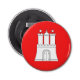 Button bottle opener with flag of Hamburg, red flag with illustration of a white castle with three towers