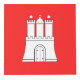 Photo Cube with flag of Hamburg, red flag with illustration of a white castle with three towers