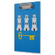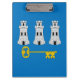 Clipboard with design with flag of Havana, capital city of Cuba, blue flag with three castles and golden key