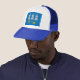 Hat with design with flag of Havana, capital city of Cuba, blue flag with three castles and golden key