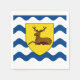 Paper napkin with design with a flag of historic county of Hertfordshire, in England, Great Britain; flag with an illustration of a stag in a yellow shield on white and blue wavy background