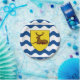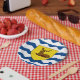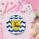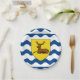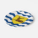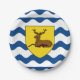 Paper plate with design with a flag of historic county of Hertfordshire, in England, Great Britain; flag with an illustration of a stag in a yellow shield on white and blue wavy background