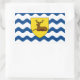 Sticker with design with a flag of historic county of Hertfordshire, in England, Great Britain; flag with an illustration of a stag in a yellow shield on white and blue wavy background