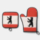 Pot Holder Set with flag of Berlin, state flag with horizontal stripes of red and white, with an illustration of a black bear in the centre