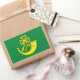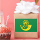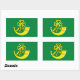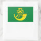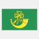 Sticker with design with a flag of historic county of Huntingdon, in England, Great Britain; green flag with a gold ribboned hunting horn