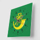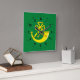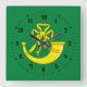 Wall Clock with design with a flag of historic county of Huntingdon, in England, Great Britain; green flag with a gold ribboned hunting horn