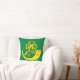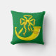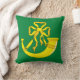 Throw pillow with design with a flag of historic county of Huntingdon, in England, Great Britain; green flag with a gold ribboned hunting horn