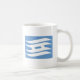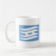A mug with a design with the flag of Hyōgo Prefecture in Japan (兵庫県, Hyōgo-ken), a blue flag with a white symbol