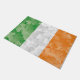 The Irish flag has three stripes in green, white, and orange colours. This product associates the colours of the national flag and shamrocks. Shamrock comes from the Gaelic word seamrog, which means "little clover." St. Patrick allegedly used the three-leaf clover to teach people about Christianity as he travelled around Ireland. The leaves illustrated the Father, Son, and the Holy Spirit of the Holy Trinity. Shamrocks are an Irish symbol.