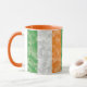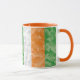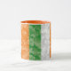 The Irish flag has three stripes in green, white, and orange colours. This product associates the colours of the national flag and shamrocks. Shamrock comes from the Gaelic word seamrog, which means "little clover." St. Patrick allegedly used the three-leaf clover to teach people about Christianity as he travelled around Ireland. The leaves illustrated the Father, Son, and the Holy Spirit of the Holy Trinity. Shamrocks are an Irish symbol.