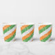 The Irish flag has three stripes in green, white, and orange colours. This product associates the colours of the national flag and shamrocks. Shamrock comes from the Gaelic word seamrog, which means "little clover." St. Patrick allegedly used the three-leaf clover to teach people about Christianity as he travelled around Ireland. The leaves illustrated the Father, Son, and the Holy Spirit of the Holy Trinity. Shamrocks are an Irish symbol.