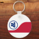 Keychain with the flag of Irving, Texas. A white and red flag with a blue symbol