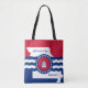 Tote bag with flag of Jefferson city, Missouri; red, blue and white flag
