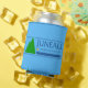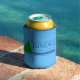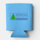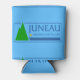 Can cooler with flag of city of Juneau, Alaska; blue flag with stylised illustration of trees