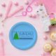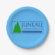 Paper plate with flag of city of Juneau, Alaska; blue flag with stylised illustration of trees