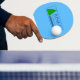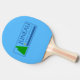 Ping pong paddle with flag of city of Juneau, Alaska; blue flag with stylised illustration of trees