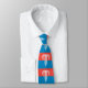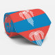 Tie with a design with the flag of Kansas City, Missouri. A red and blew flag with a stylised white emblem in the centre