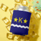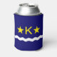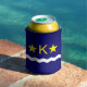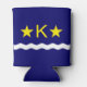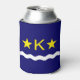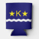 Can Cooler with design with flag of Kinshasa, capital city of Democratic Republic of Congo, blue flag with white wave, two golden stars and letter ‘K’ in the centre