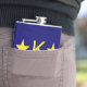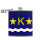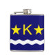 Vinyl wrapped flask with design with flag of Kinshasa, capital city of Democratic Republic of Congo, blue flag with white wave, two golden stars and letter ‘K’ in the centre
