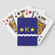 Poker playing cards design with flag of Kinshasa, capital city of Democratic Republic of Congo, blue flag with white wave, two golden stars and letter ‘K’ in the centre