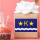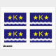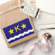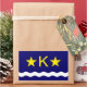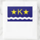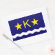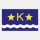 Stickerwith design with flag of Kinshasa, capital city of Democratic Republic of Congo, blue flag with white wave, two golden stars and letter ‘K’ in the centre
