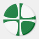 Magnet with design with a flag of historic county of Kirkcudbrightshire, in Scotland, Great Britain; green and white flag with cross of Cuthbert