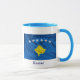 The flag of the Republic of Kosovo was adopted by the Assembly of Kosovo immediately following the declaration of independence of the Republic of Kosovo from Serbia on 17 February 2008. The flag is the result of an international design competition, organised by the United Nations-backed Kosovo Unity Team, which attracted almost one thousand entries. The now-used design is a variant of one proposal designed by Muhamer Ibrahimi. It shows six white stars in an arc above a golden map of Kosovo on a blue field. They symbolise Kosovo's six major ethnic groups. Before the declaration of independence, Kosovo was under the administration of the United Nations and used the UN flag for official purposes. Both the Serbian and Albanian ethnic populations used their own flags since the Socialist Yugoslavia period. The Serbs use a red, blue and white tricolor, which forms the basis of the current flag of Serbia. The Albanian population used the flag of Albania since the 1960s as their nationality flag. Both flags can still be seen and used inside independent Kosovo.