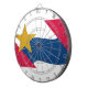 Dartboard with a design with the flag of Lafayette, Indiana.. A red, white and blue flag with a yellow star