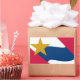Sticker with a design with the flag of Lafayette, Indiana.. A red, white and blue flag with a yellow star