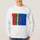 This design features the flag of Lapland, which is a region of Northern Europe that is more properly called Sápmi. The area has been traditionally inhabited by the Sámi people. The region stretches over four countries: Norway, Sweden, Finland, and Russia. In many parts of the world, Lapland is associated with the Christmas celebrations.