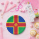 Paper plate with design with a flag of historic county of Lincolnshire, in England, Great Britain; green and blue flag with red and yellow cross and a Fleur-de-Lis in the centre