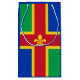 Paper Bag with design with a flag of historic county of Lincolnshire, in England, Great Britain; green and blue flag with red and yellow cross and a Fleur-de-Lis in the centre